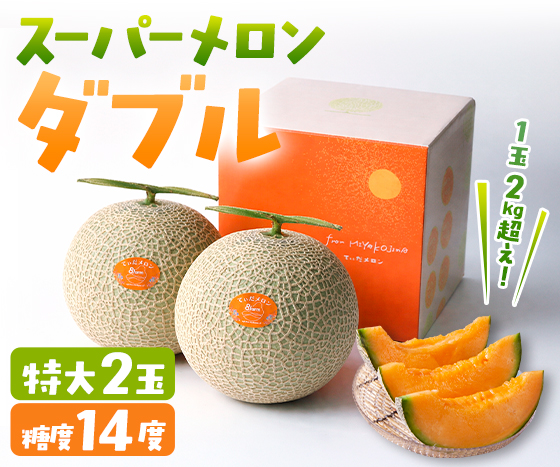 沖縄県産 宮古島 スーパーメロン・ダブル(特大2玉)《4月・5月発送》 ■規格 4Lサイズ(2.0kg以上)×2玉 ■送料 送料無料 ■この商品の収穫発送時期 4月下旬~5月上旬 ■価格 12,300円(税込) 数量 数量変更 ■小計 12,300円(税込) この商品を削除