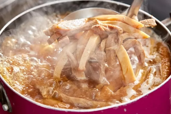 そのソーキを、醬油ベースのオリジナルたれでじっくりと煮込み、仕上げていきます。