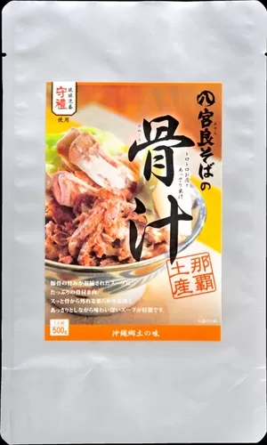 沖縄郷土料理の『骨汁』2食|骨付き肉たっぷり《常温レトルトパック》【宮良そば】 この商品の収穫・発送時期 基本通年 【老舗】宮良そばの骨汁沖縄県民に愛される骨汁とは?沖縄のソウルフードであり、沖縄そばの出汁を作る際の骨付き肉を使って、アレンジした郷土料理です。黄金色の出汁にお肉のついた骨をどっさり乗せて、そこに豆腐や青菜を添えていただきます。絶品スープの秘密とは?長い年月をかけてたどり着いた絶品スープは、豚骨の出汁骨、カツオ出汁、昆布、野菜出汁を6時間以上かけて優しく炊いた黄金スープ。あっさりなのにコクと旨味がたっぷりで、胃に沁みわたります。ホロホロお肉をいただきます骨汁は骨を食べるわけではなく、骨の周りについた柔らかいお肉をいただく料理です。6時間も炊いてあるので、ホロホロになったとっても柔らかいお肉はお箸でスルリと骨から外れます。弱火でコトコト炊いてあるので、お肉の旨味がしっかり残っています。こんな方にオススメ!□ 絶品な沖縄郷土料理を試してみたい方□ 長い年月をかけてたどり着いた豚骨あっさり出汁を試してみたい方□ 沖縄県民だが、まだ食べたこと無い方五臓六腑の満足度100パーセント!ぜひ一度ご賞味ください宮良そばについて昭和61年創業の沖縄・那覇と浦添に店舗展開をしている、老舗・沖縄そば専門店です。代表メニューの「八重山そば」をはじめ、「骨汁」、「ソーキそば」や「てびちそば」、各種「定食」など、豊富なメニューと美味しさが人気のお店です。ネット通販では、沖縄以外ではなかなか食べられない思い出の味を、お店の美味しさそのままに全国各地にお届けして、沖縄県民又は沖縄ファンの皆さんに喜んで貰いたい!という強い思いから積極的に取り組んでいます。実際の店舗での骨汁を食べる様子はこちらhttps://youtube.com/shorts/wXSq-nygPC0?feature=share お客様の感想 まだありません お客様感想一覧へ 関連商品 ソーキそば 2食セット(出汁が染込んだソーキが美味しい) ¥5,400円(税込) 詳細ページへ 【大人の贅沢アグー豚パイとんBBQセット】味にこだわるBBQならアグー豚パイとん ¥9,400円(税込) 詳細ページへ 沖縄県産 車海老 BBQ用 特大 500g|久米島産 ¥7,100円(税込) 詳細ページへ 沖縄県産 高品質アーサ(あおさ)40g 乾燥|久米島 ¥1,400円(税込) 詳細ページへ アグー豚パイとん100%・生ハンバーグ150g 6個入り ¥5,700円(税込) 詳細ページへ