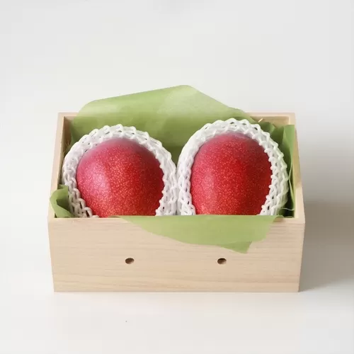 沖縄県産 桐箱入りプレミアムマンゴー マンゴー至宝~しほう~《30セット限定品》 この商品の収穫・発送時期 6月中旬~7月下旬 特別な日には特別な贈り物を。糖度16度以上の大玉マンゴー結婚祝い、入籍祝い、お誕生日、銀婚式、ギフトに特別な日には、特別な贈り物を。受取った方を感動させたい。確実に喜んでもらいたい。そんなご要件にピッタリなのが、マンゴー至宝(しほう)です特別な日には、高品質なマンゴーを通常マンゴーや果物は大きいと甘さや糖度が落ちやすいものですが、マンゴー至宝は大玉なのに高糖度。糖度は16度以上、重さも1つ約550~600g(2つで1.1キロでご用意しております)の大玉です。更に、桐箱に入れてお届けいたします。希少なマンゴー至宝エコファーマー、減農薬栽培のマンゴー農家さんの技術の粋。高品質なマンゴーゆえ、限定30個の販売。3万個以上のマンゴーから、厳選された約30セットです。年に1度、一生に1度のプレゼントをしてみませんか?糖度16度以上、桐箱入りの大玉マンゴー(2個入り)で、喜びと感動を贈りませんか?こんな方にもおすすめです・お友達の結婚祝いに、みんなで折半・お父さん、お母さんの銀婚式に、ご兄弟で折半・普段頑張っているご自身にご褒美マンゴー生産者さんご紹介『究極の目標は、全てが極上品、秀品率100%です!』と語ってくれる、とても志の高い素晴らしい農家さん。エコファーマー認定農園で環境に優しい農業に取組んでいます。有機質資材による土づくり、化学肥料および、化学合成農薬の使用低減など、環境にも優しいマンゴー栽培を行っています。マンゴーの保存方法1)常温日陰で、食べ頃になるまで追熟を行ってください。一日一回表裏をひっくり返すことで満遍なく追熟されます。 2)マンゴーの表面に白い粉のようなものが、かかっているように見える時がありますが、ブルームというマンゴーに必要な自然なものです。洗い落としたり、ふき取ったりしないでください。3)食べ頃になると、白い粉は消え、代わりにワックスをかけたような艶が出てきます。4)香りが強くなって、皮の表面がツヤツヤしてきたら食べ頃です。食べ頃になりましたら、冷蔵保存してください。マンゴーの切り方1)マンゴーの側面を上にし種に沿って両側とも包丁を入れ三枚下ろしの状態にする。(種は薄くて平べったい1センチ幅)2)両側の実の部分は、賽の目状に包丁を入れる。3)皮を押してひっくり返すと綺麗な切れ目が出ます。マンゴー極のインタビュー(※至宝の生産者さんでもあります) お客様の感想 まだありません お客様感想一覧へ 関連商品 【甘み、旨味が凝縮の新ブランド】アグー豚・しゃぶしゃぶ用 1㎏ 【パイとん】お取り寄せ ¥7,700円(税込) 詳細ページへ 【沖縄フルーツ定期便】アーウィン&キーツ|マンゴー2種セット 全2回 ¥14,600円(税込) 詳細ページへ 【沖縄フルーツ定期便】マンゴー 2回便(宮古島産)|全2回 ¥14,800円(税込) 詳細ページへ 桐箱 メロン【冬メロン Premium】大玉1玉(1.7~2.0㎏)《12月・1月発送》 ¥19,600円(税込) 詳細ページへ 沖縄県産 アップルバナナ 1kg(国産バナナ・無農薬) ¥4,400円(税込) 詳細ページへ
